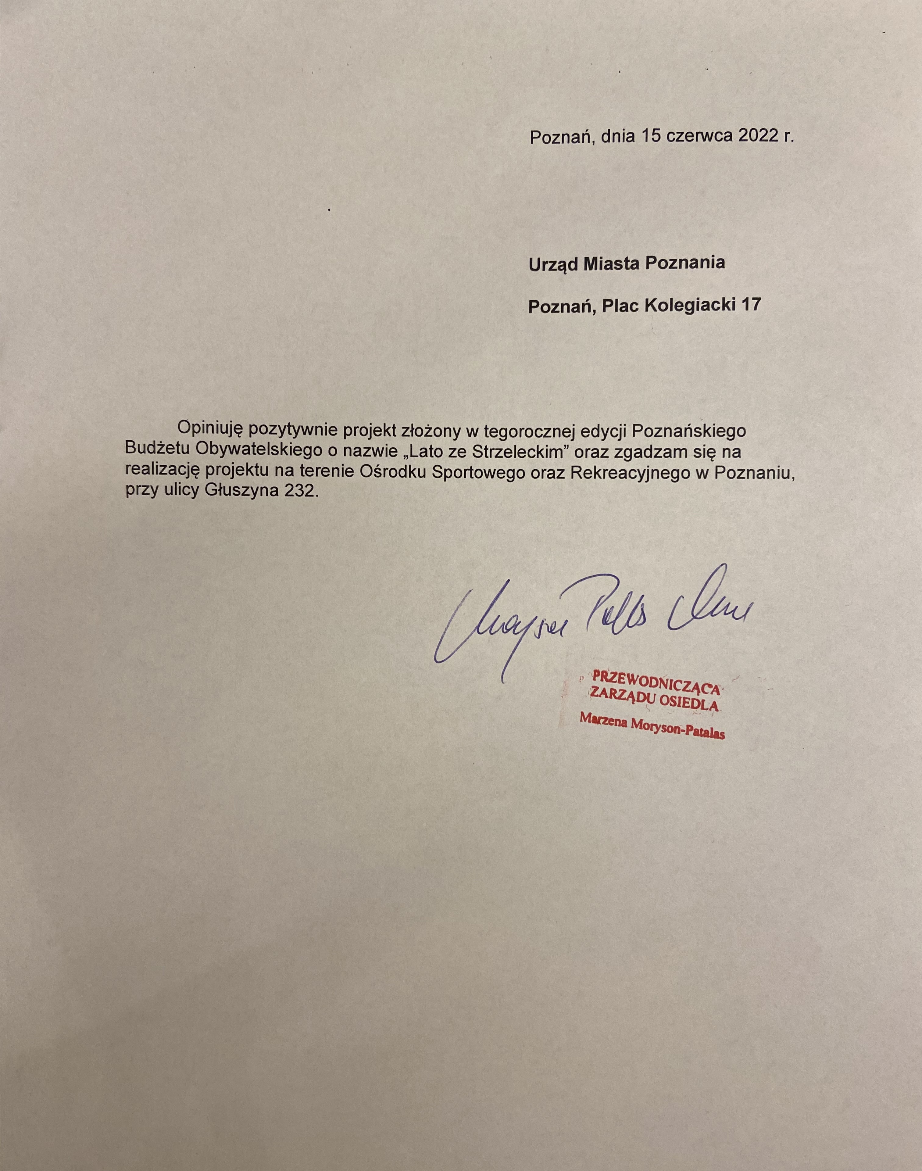 Uzasadnienie Zgodnie z treścią uchwały nr XXII/107/III/2022 RO Starołęka-Minikowo.