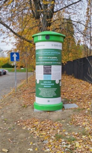 Atmosferyczny Filtrator Antysmogowy – urządzenie jest przeznaczone do pracy w środowisku naturalnym, na wolnym powietrzu, w przestrzeni miejskiej. Głównym zadaniem urządzenia jest redukcja zanieczyszczeń stałych wchodzących w skład tzw. smogu. Urządzenie na zasadzie filtracji wgłębnej usuwa ze strumienia zasysanego powietrza cząstki zawieszone stałe z przedziału wielkości od PN 0,3 PM1 poprzez PM 2,5 i PM 10. Urządzenie zostało zoptymalizowane do usuwania szczególnie niebezpiecznych cząstek DEP emitowanych z samochodów napędzanych silnikami diesla o rozmiarach submikronowych (poniżej <1MM) uznawanych za najbardziej szkodliwe dla życia i zdrowia ludzi i zwierząt.